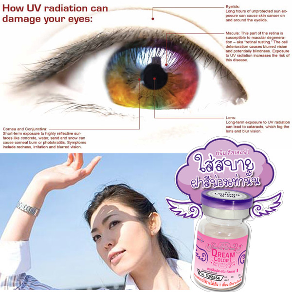 ช่วงป้องกันได้มากเลยทีเดียวซึ่งถ้าเทียบกับแว่นกันแดดแล้ว คอนแทคเลนส์ dreamcolor1 สามารถกันUVได้มากเลยทีเดียว!!!